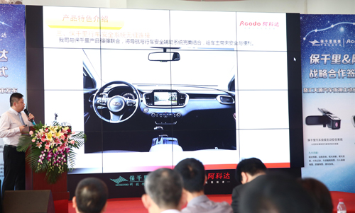 新品讲解之后迎来本次活动的焦点环节——签约仪式,保千里视像科技集团常务副总裁蒋建平与阿科达汽车电子有限公司总经理温寒签订战略合作协议,标志着双方合作正式开启。阿科达专注于车载多媒体系统及相关产品的开发、生产、销售,全系列产品一直与国内多家知名4S集团及车厂保持着紧密合作关系,以高品质的产品和服务征战市场,深受客户青睐。保千里与阿科达强强联手,将巩固与提升双方在各自领域的竞争力和影响力,开创中国汽车主动安全市场新局面。
