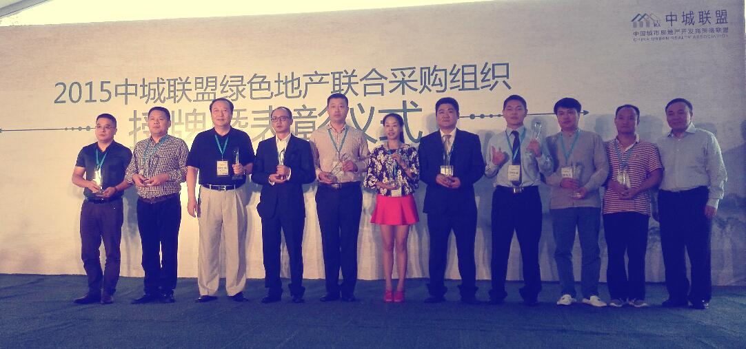 近日,2015中城联盟绿色地产联合采购供组织授牌暨表彰仪式在浙江德清举行,60余位中城联盟成员房地产企业董事长、近100位供应商代表出席,狄耐克常务副总侯宏强受邀参加表彰仪式。